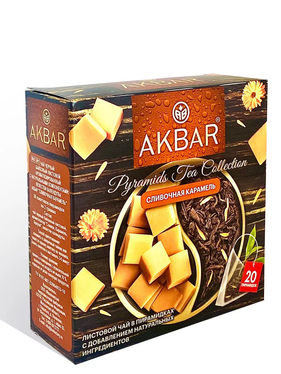 Чай "Акбар" черный Сливочная карамель 20пак*2гр пирамидки 1/12